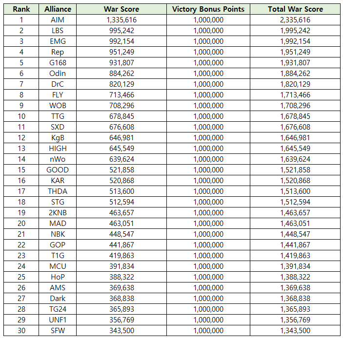 ■ Alliance Wars Victory Servers TOP 30