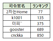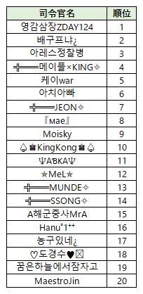今回のエピックバトルで上位1~20位に入賞された司令官の方々を下記のとおり発表いたします。