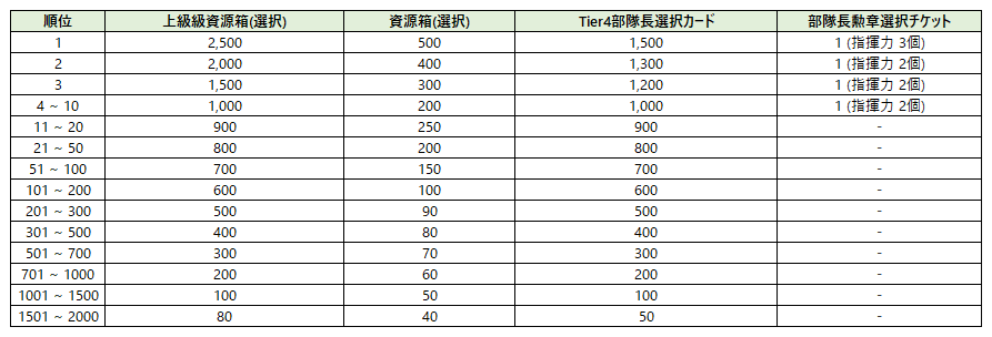 1~10位および抽選当選者の司令官の方々には、勲章選択券に関する追加のご案内を別途お送りいたします。