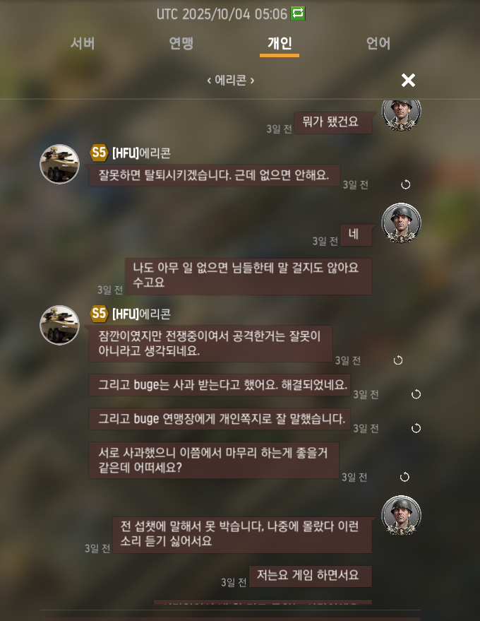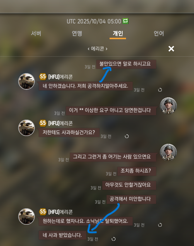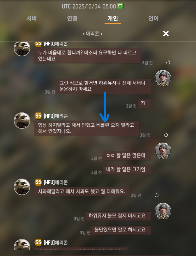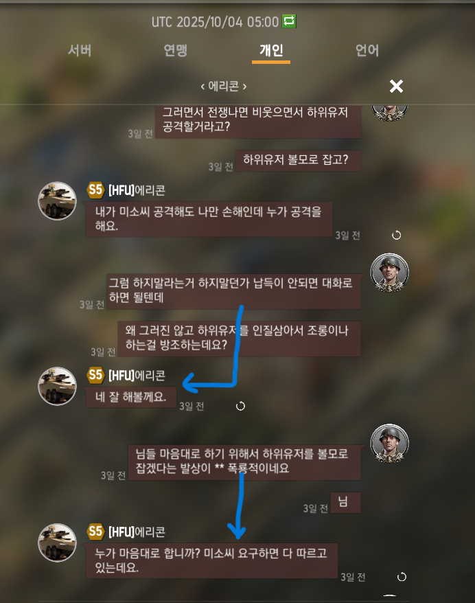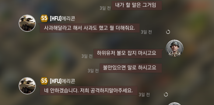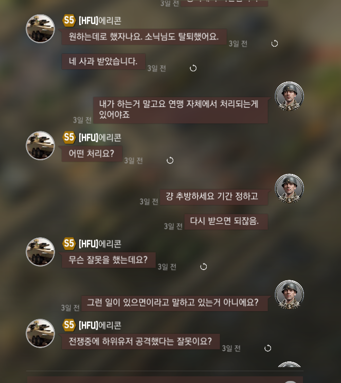 하위 유저 건들지 말자, 건들면 처벌은 이렇게 하자 까지 대화하고