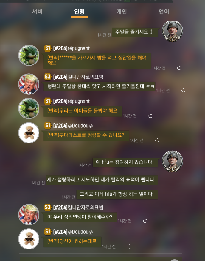 솔직히 전쟁터져서 재밌는거 많은데.. 욕이 심해서 올리기 애매함.