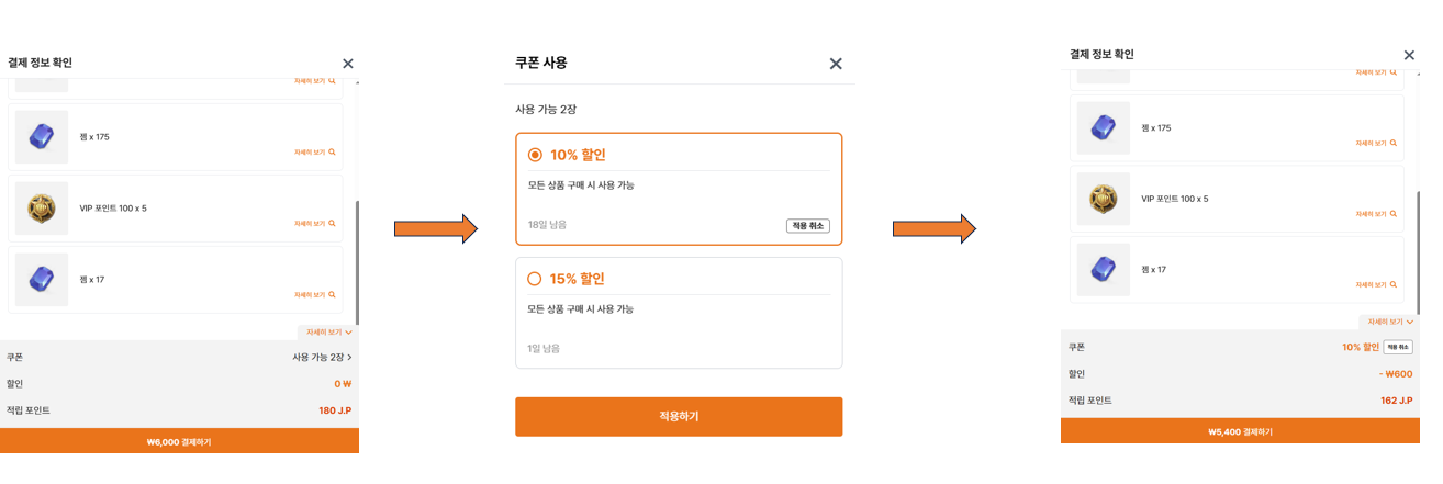 - 쿠폰 사용 방법 [결제 정보 확인] > [쿠폰] > [쿠폰 사용]