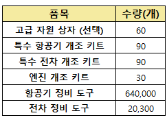 [웹 상점 및 자체결제 한정 전차 정비도구 상품 구성품]