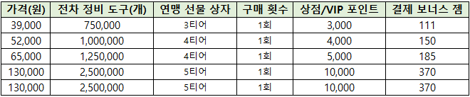 한번만 구매할 수 있는 연속 상품이 추가되었으며,