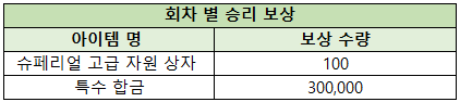 - 각 회차의 서버 대전 승리 서버에는 회차별 승리 보상이 지급됩니다.