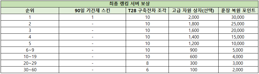 ※ 승리 서버 보너스 점수: 30,000,000 (고정)