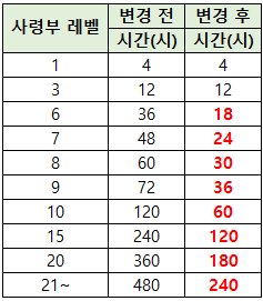 ※ 변경된 휴면 전환 시간은 9/30(화) 오픈 예정인 신규 234서버에 우선 적용되며, 나머지 서버는 추후 서버 재시작 시 적용될 예정입니다.