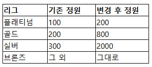 이에, 변경된 리그의 시작 시점과 리그 별 정원의 변동이 있어
