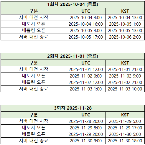 Legends Cup 진행 기간 동안에는 회차별로 서버 대전 진행 시간이 조정됩니다.