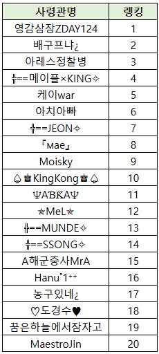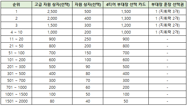 1~10위 및 추첨 당첨자 사령관님들께는 훈장 선택권 관련 추가 안내를 별도로 드릴 예정입니다.