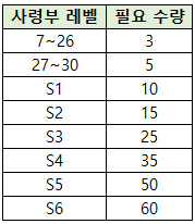 3. 사령부 레벨 별 '고레벨 서버 이동권' 필요 수량