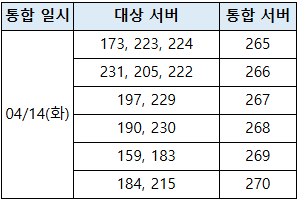 ※ 서버 통합 시작 시간은 공지를 통해 추가 안내해 드릴 예정입니다.