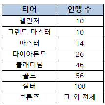 ■진지 공방전 리그제 티어 별 연맹 수