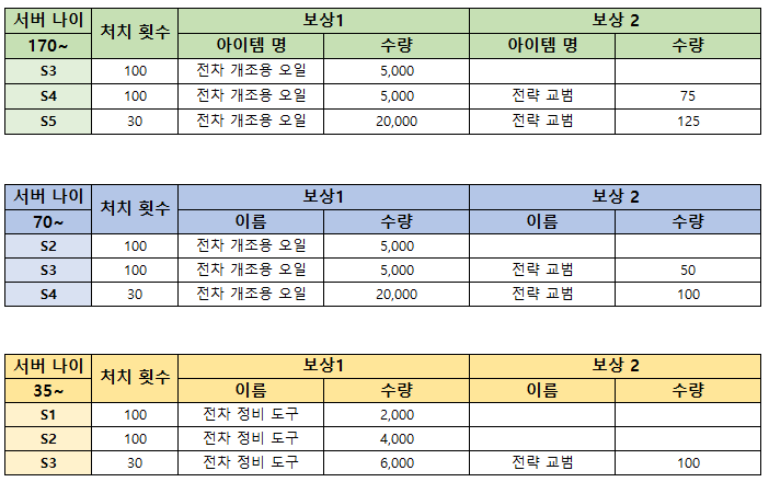 - 서버 나이에 따라 타겟이 된 정예 전투단 레벨에 차이가 있습니다.