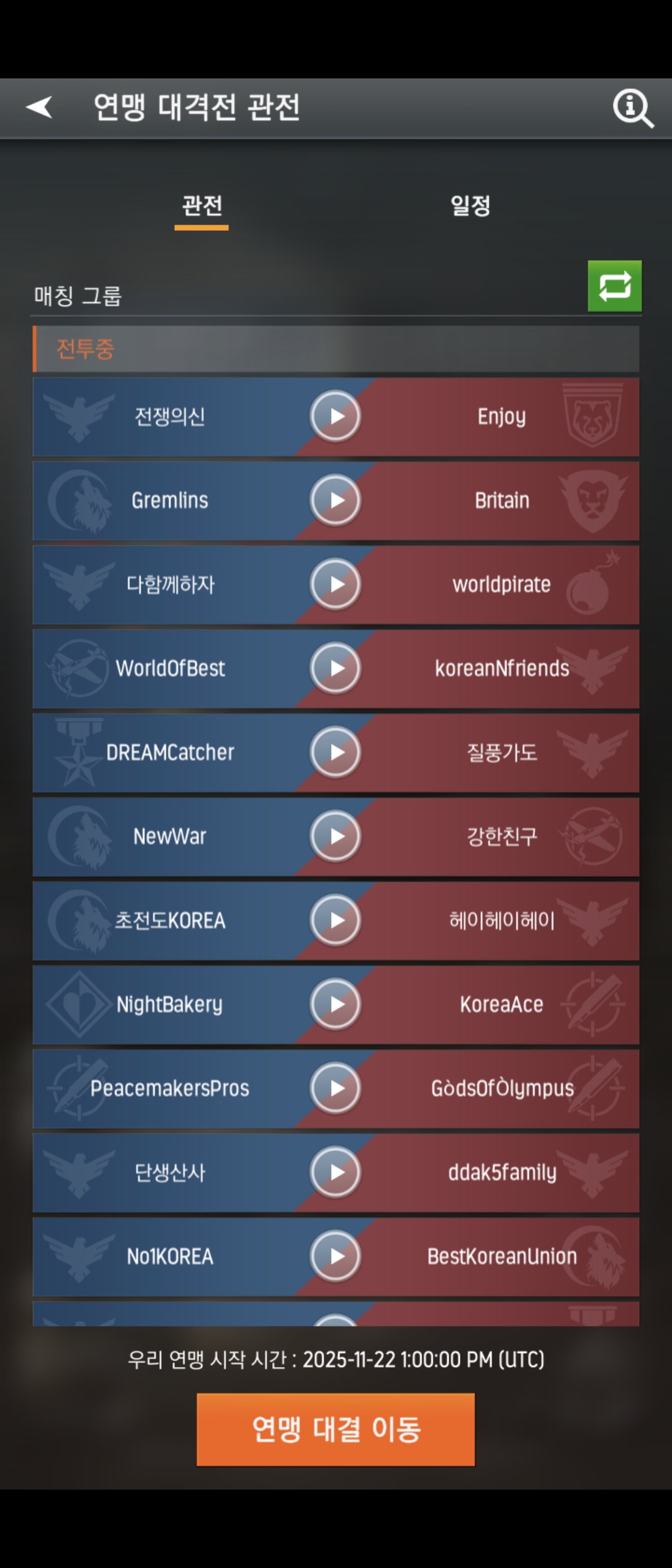 연맹대격전 입장도 안되고 관전도 안되요~~ 빨리 버그를 고쳐주세요.