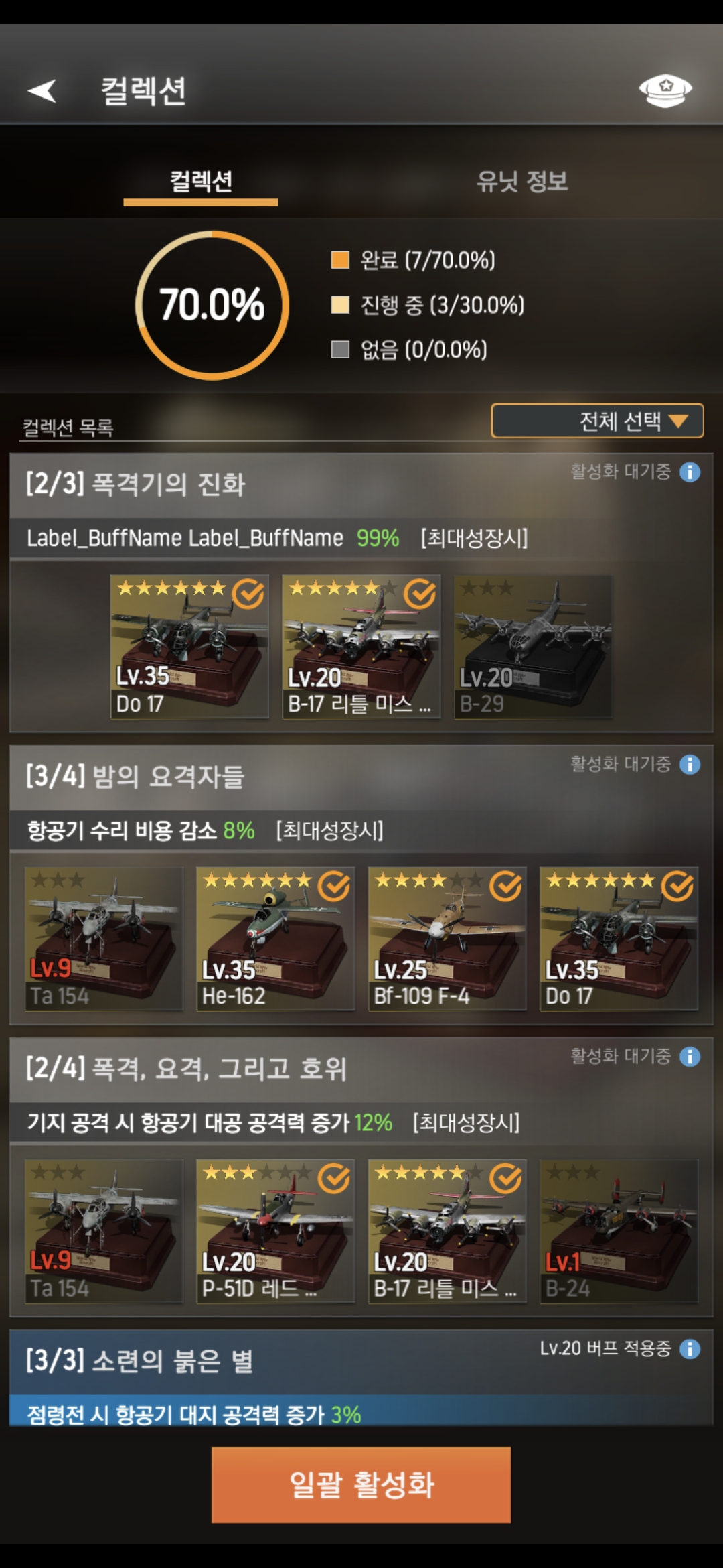 연대기 기념관 항공기에서 최상단 버프가 제대로 표기되지 않고 있음. 추가적으로 활성화 대기중에 들어가도 레벨별 버프가 제대로 표기되지 않음