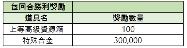 ※ 伺服大戰傳奇盃獎勵將分為每回合勝利伺服器獎勵與最終勝利獎勵。