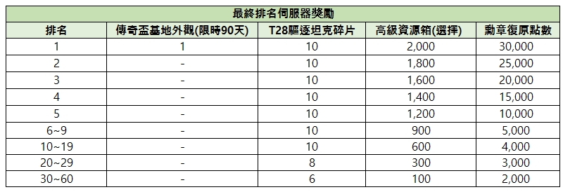 ■ 伺服大戰 Legends Cup 傳奇盃:最終排名伺服器獎勵內容