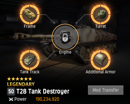 - 引擎模組開放條件:指揮坦克達50級,且改造槽位達成傳說級16個後開放。