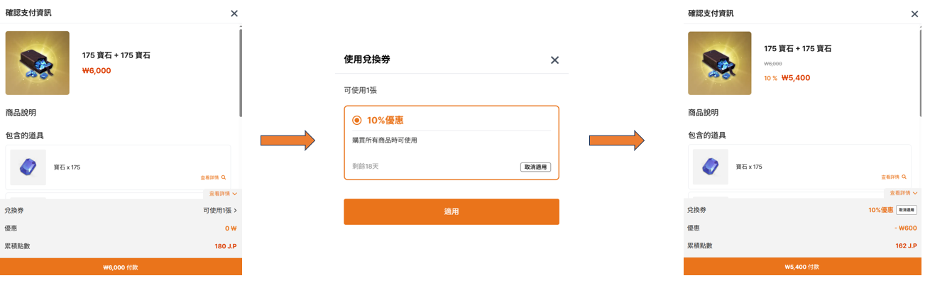 - 優惠券使用方式:[確認付款資訊] →[兌換券] → [使用兌換券]